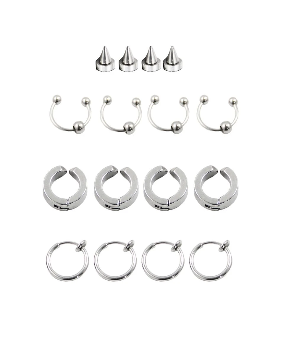 Embrace punk rock style for as long or as little as you’d like with this deluxe 16-Piece Clip-On Punk Jewelry Set! Rock a few faux ear piercings or cover every inch of your face with these assorted clip-on hoops and spikes. The combinations (and the fun) are endless!