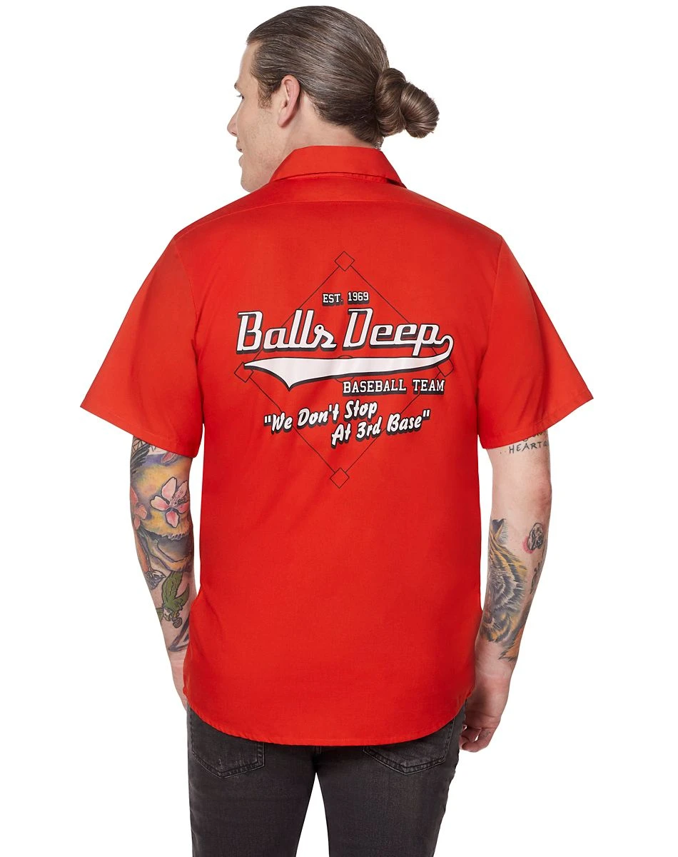 Winners get it in! Show off your love for baseball and romance in this hilarious Adult Balls Deep Work Shirt. Why stop at 3rd base when you can go the distance?