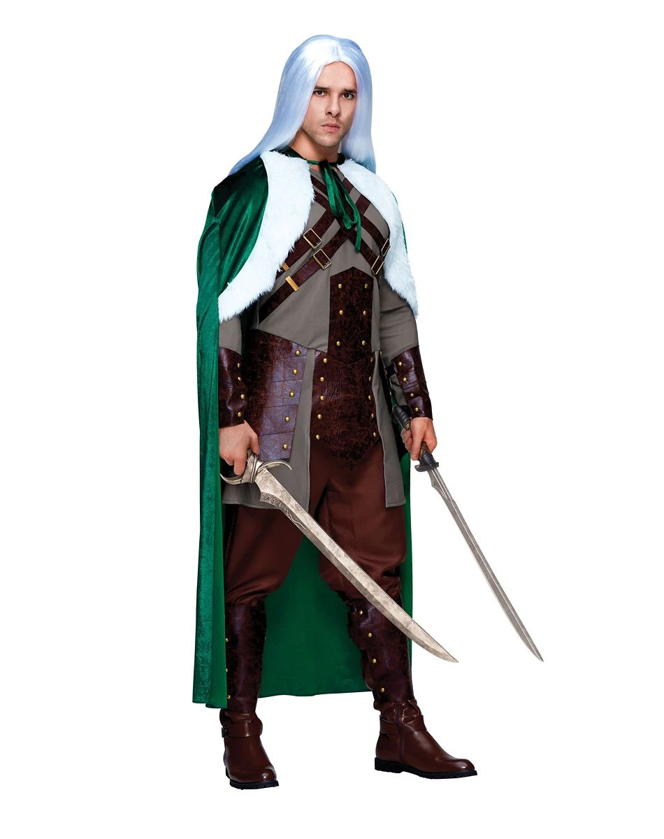 Enhance your next role-playing experience by embodying your favorite D&D character when you dress up in this Adult Drizzt Costume. This Dungeons & Dragons costume will have you looking just like your favorite dark elf during your next campaign. Wearing this tunic, a green cape, arm guards, shin guards, and a wig, you’ll be ready to cast some dark magic everywhere you go as this classic hero.Â