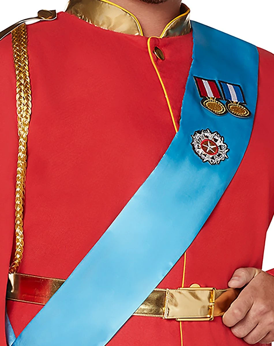 Feel just like you’re a part of the royal family this Halloween when you dress up in this fancy English Prince Plus Size Costume. Featuring a red jacket, black pants, a gold belt, and a blue sash, this costume will have you looking ready to become heir to the throne in no time! Everyone at the party will be calling you “your highness” once you walk in the room rocking this elegant English prince costume.