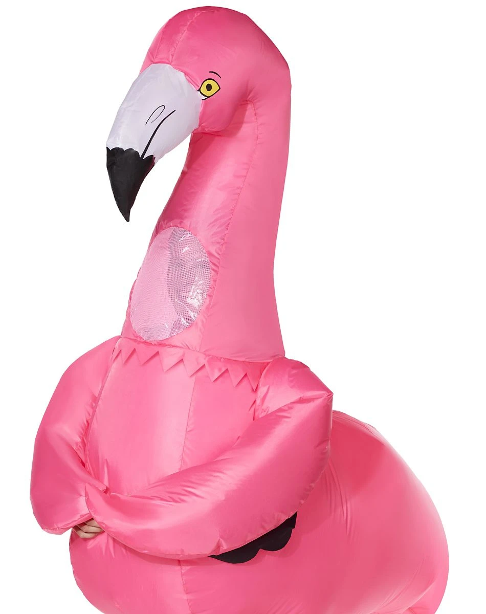 There’s no doubt you’ll be one of the best dressed people at your next Halloween party when you walk in wearing this inflatable flamingo costume! This inflatable costume comes complete with a built-in fan that is sure to blow away your competition. Flap your wings to victory when you enter the costume contest, and make sure you stand on one leg for authenticity!