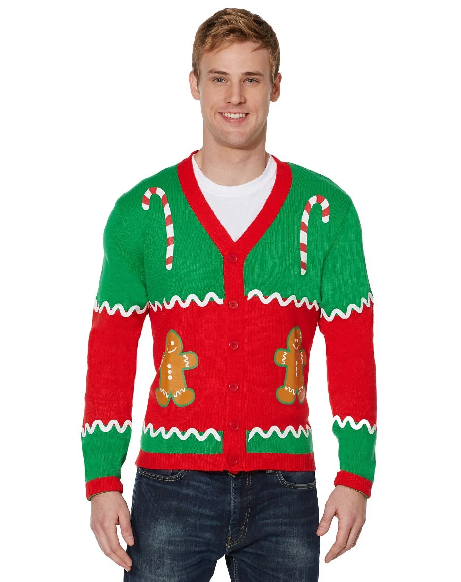 These gingerbread men will always have your back! Throw on this adorable Christmas sweater, and get ready for a night filled with holiday cheer. Button detail allows you to wear this cardigan two different ways for two different Christmas looks!