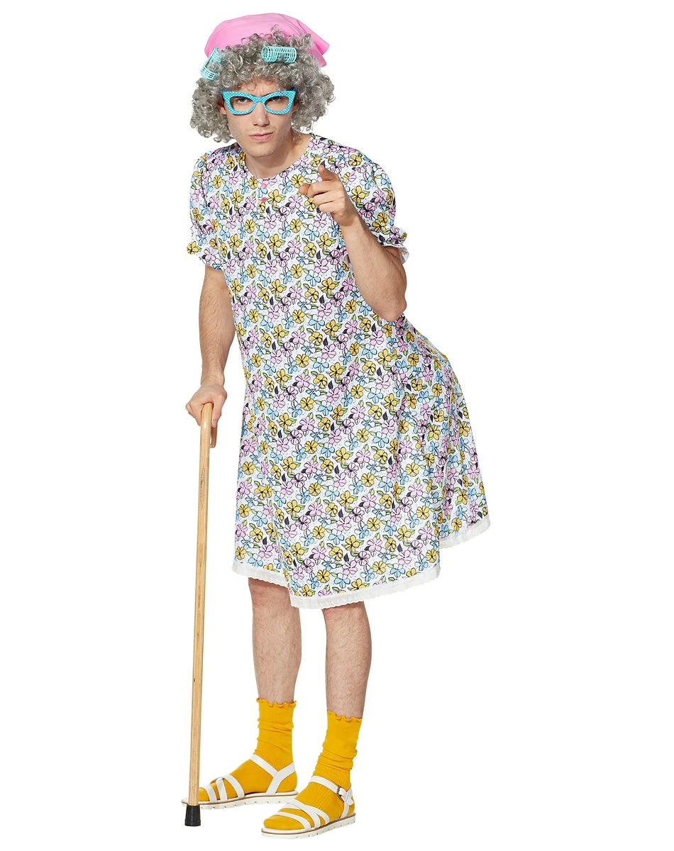 You might have bad hips, but at least you have style! Put on this hilarious Adult Grandma Flower Dress Costume for Halloween and you’ll have everyone cracking up. Featuring a dress, headwrap, hair curlers, a wig, glasses, an inflatable butt pad, and socks, this costume includes everything you need to transform into an old granny!