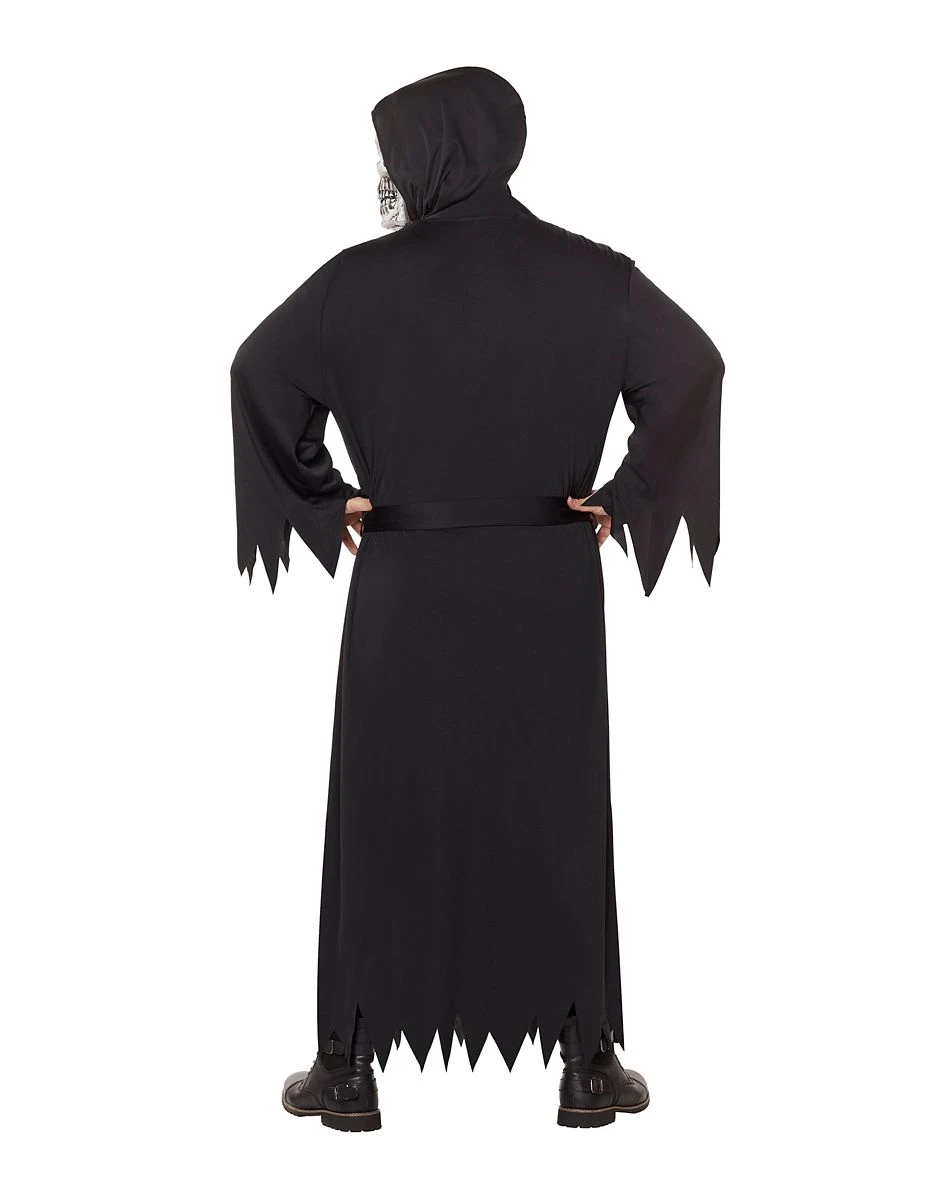 Create a dark character with this grim reaper robe! This comfortable robe features a jagged hemline and a hooded detail that will keep you creepy all night long!