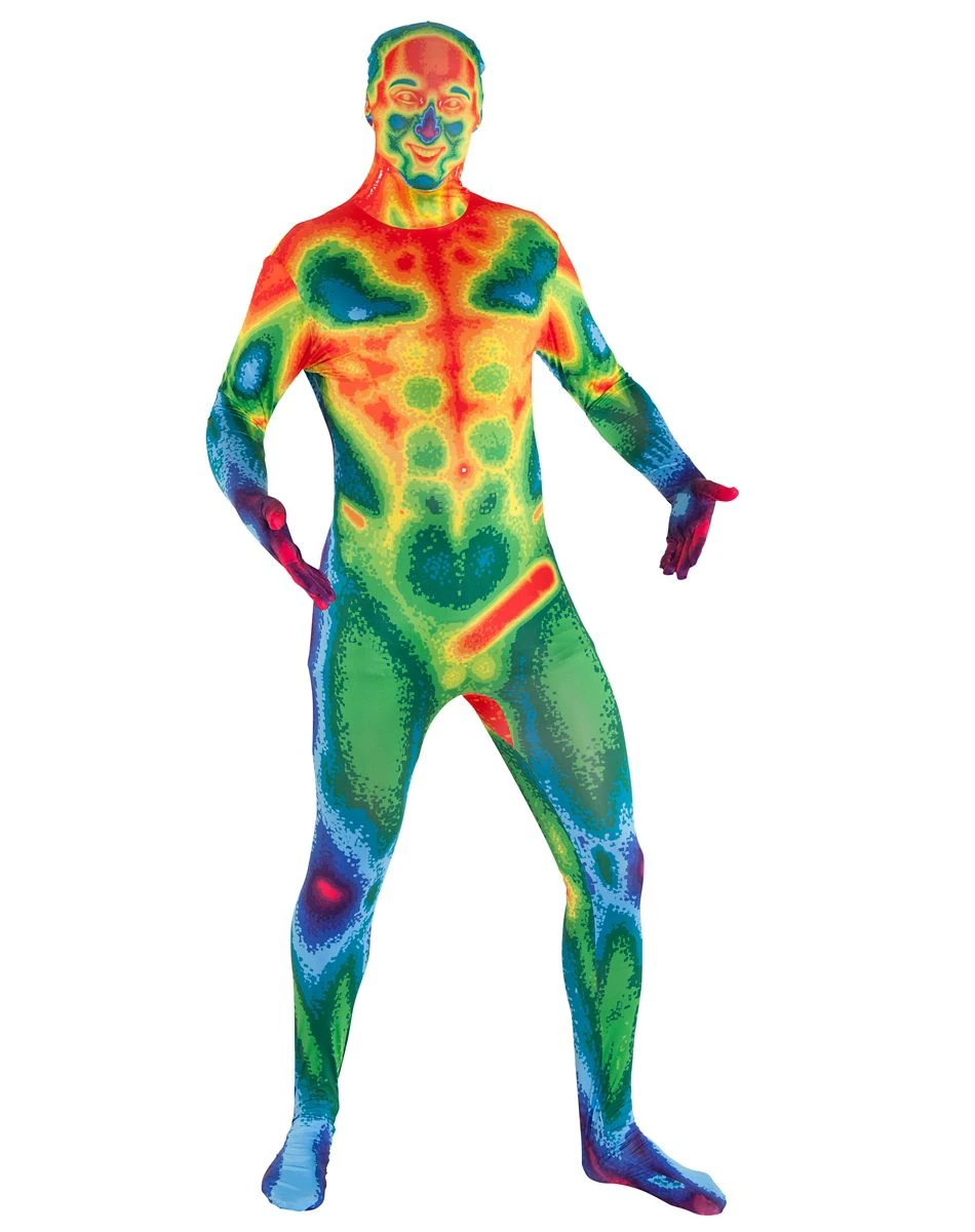 With this Infrared Skin Suit Costume, you are guaranteed to radiate the night! This colorful ensemble features an easy zipper closure for less hassle and more fun. Don’t forget to bring along bright energy this Halloween!