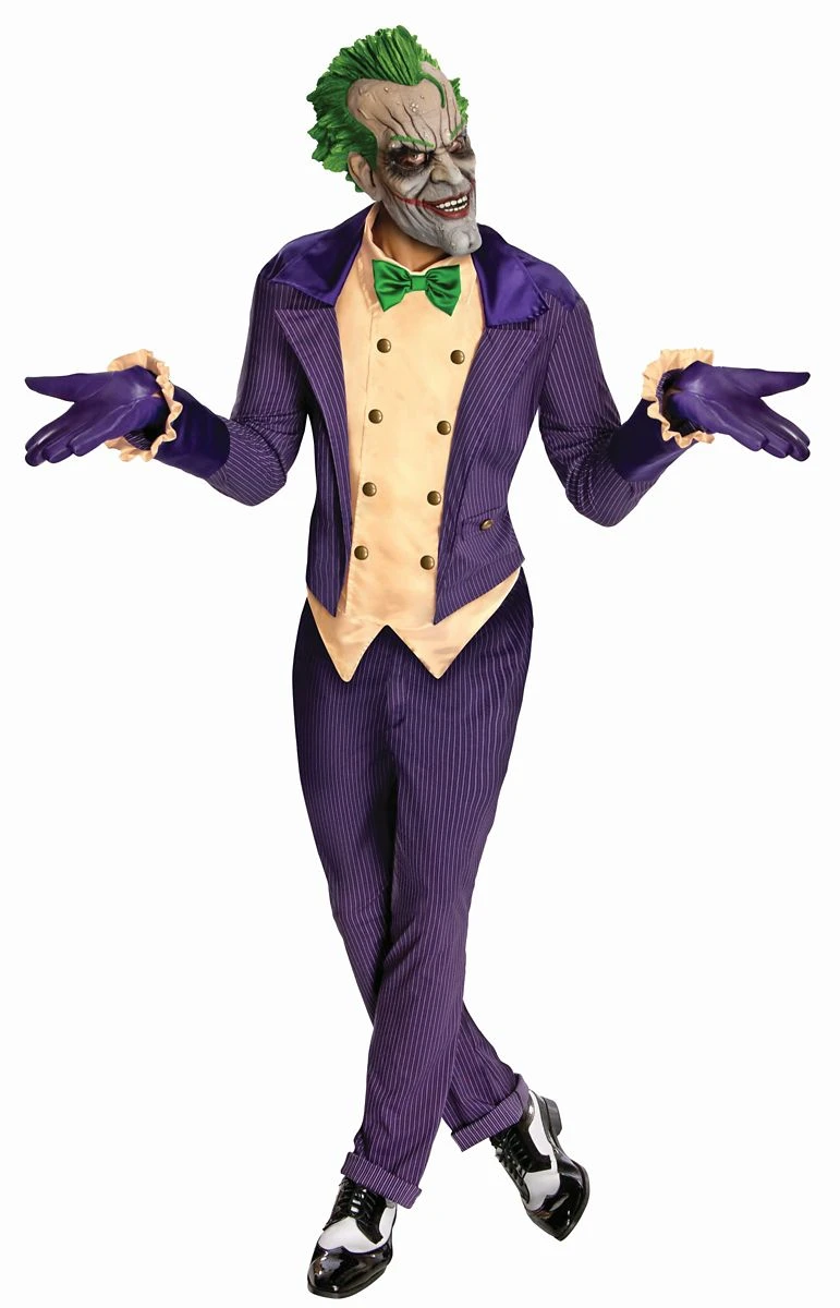 The joke will be on everyone else when you get the best villain costume around with the officially licensed Arkham Joker Adult Men’s Costume. Execute your most evil plan in the classic purple pinstripe Joker suit with yellow vest, snazzy purple gloves and an emerald bow tie. Show off your manic mug with this lifelike Joker mask and Arkham City is yours.Â