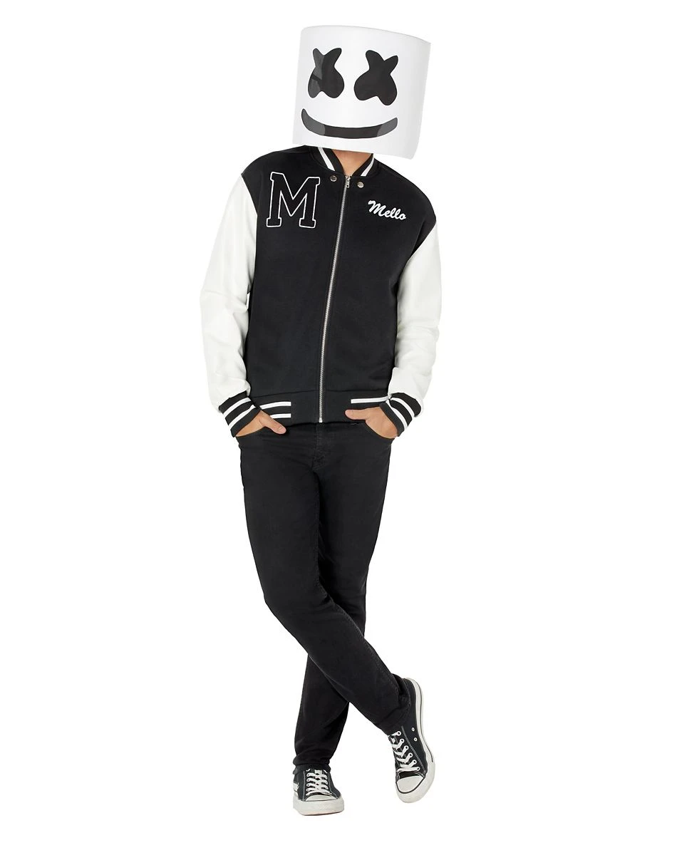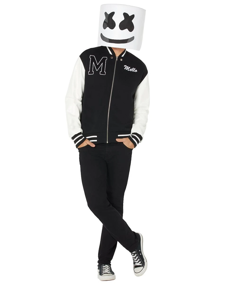 This officially licensed Adult Marshmello Jacket is the missing piece to your Halloween costume. Everyone will want to go as Marshmello. This black and white jacket has a white M on the front, and Marshmello’s logo on the back and sleeves.