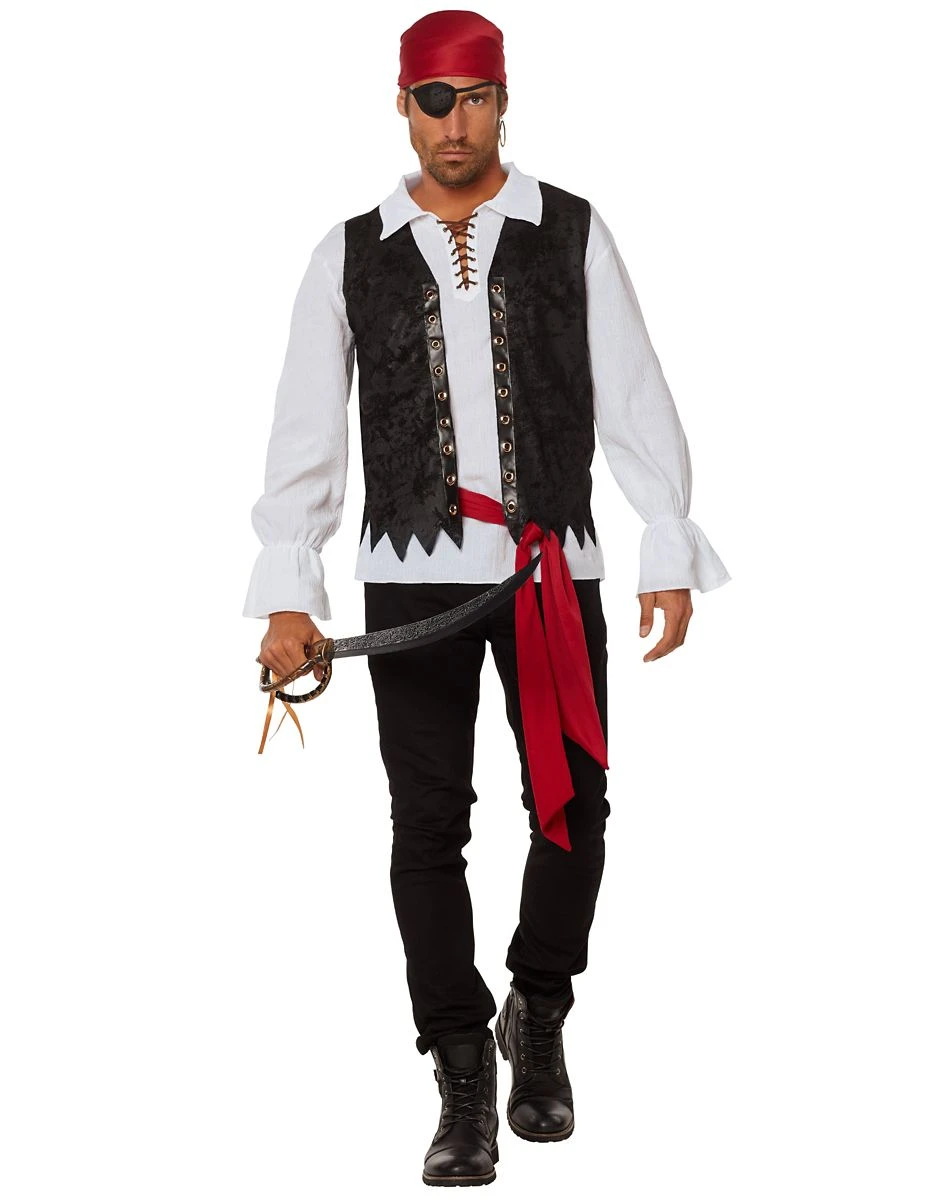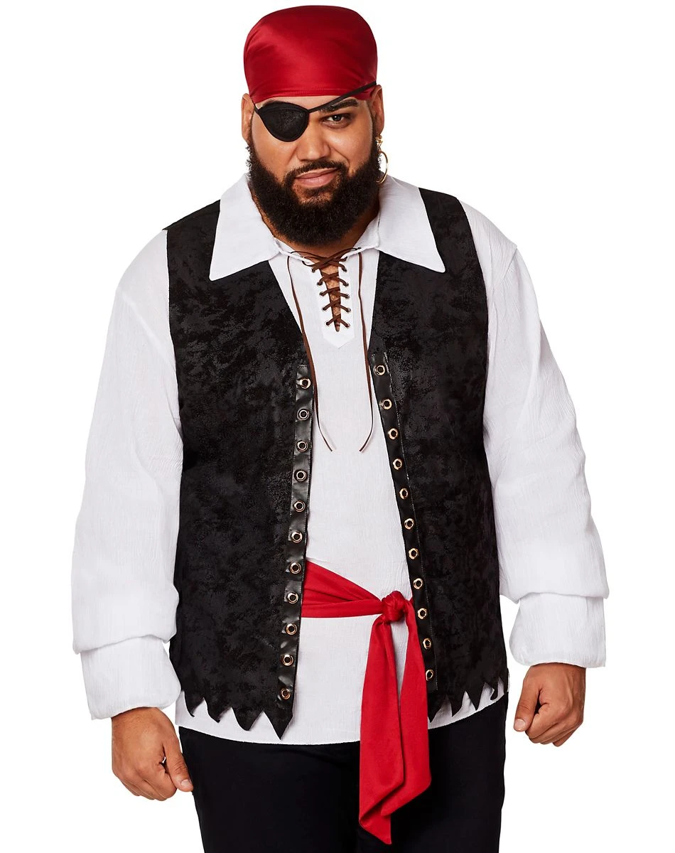 Argh, matey! Get ready for some fun when you dress in this pirate costume kit! Coming complete with a leather-look vest, a red bandana, an eyepatch, and a hoop earring, you’ll be ready to sail the seven seas in no time at all!