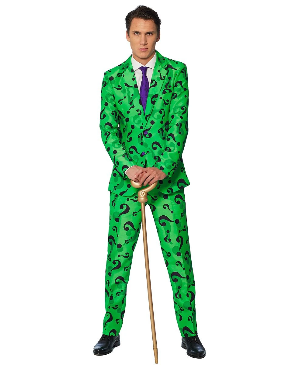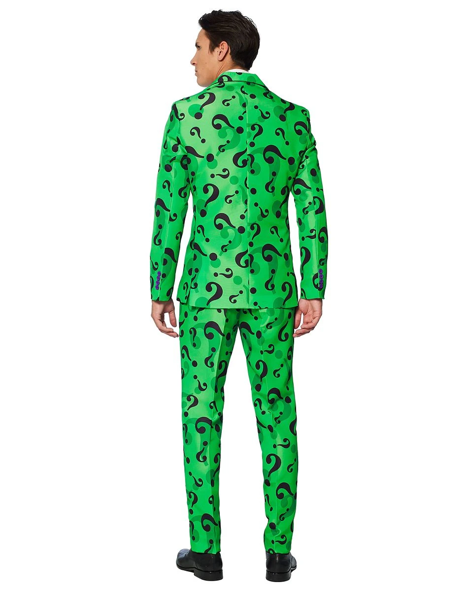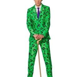 Riddle me this, Batman… What costume is sure to put you in the spotlight this Halloween? The answer is right in front of you! Use your smarts to spread some fear as Edward Nigma, one of Gotham City’s worst, with this officially licensed Riddler suit costume! This bright and brainy piece features a green jacket riddled with question marks, matching green pants, and a vibrant purple tie. Batman won’t stand a chance when you slip on this tricky ensemble!