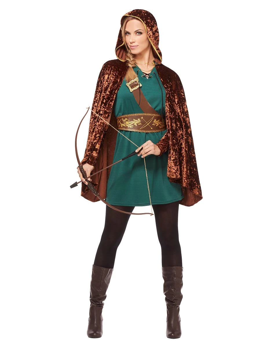 Steal from the rich and give to the poor in style with this Robin Hood dress! Featuring a classic green dress and brown hooded cape, this costume is perfect for looking as though you’ve just popped out of a storybook!