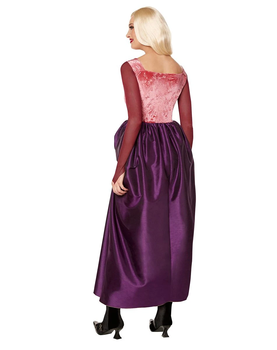 Cause trouble with your sisters and put the neighborhood children under a sleepy spell when you dress up as the famous Sarah Sanderson! Join Winifred and Mary as you dance around in Sarah’s signature dress. This captivating style is designed with a sexy lace-up bodice, layers of contrasting pink hues for a feminine touch and a lustrous skirt that flows out into beautiful red and purple layers. Any die-hard Hocus Pocus fan will be jealous of your spellbinding style this Halloween!