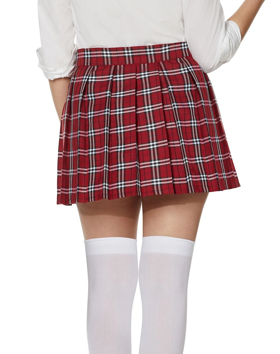 Create the ultimate sexy school girl look with the help of this red plaid skirt! This red skirt features a classic black and white plaid style, along with a large safety pin accent, making it absolutely perfect for matching with a white top, uniform shirt, or whatever else you can think of. And no matter what look you choose, this skirt is sure to give you an A+ in style!
