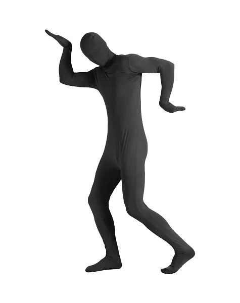 Step out from the shadows and scare them silly when you create a spy, spirit, or superhero of your own invention in this amazing Super Skins® Black Zentai Adult Mens Bodysuit. The one-piece bodysuit covers your head, hands, and feet but you can still look and breathe through it.