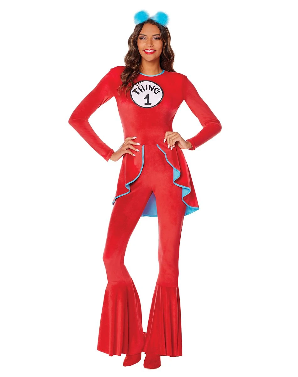 You’re sure to be bouncing off the walls when you suit up in this officially licensed costume! Featuring a red jumpsuit, a matching headband topped with bright blue poms, and patches that read “Thing 1” and “Thing 2,” this look has everything you need to complete your wacky ensemble. Stir up some trouble on Halloween night with this silly fit!