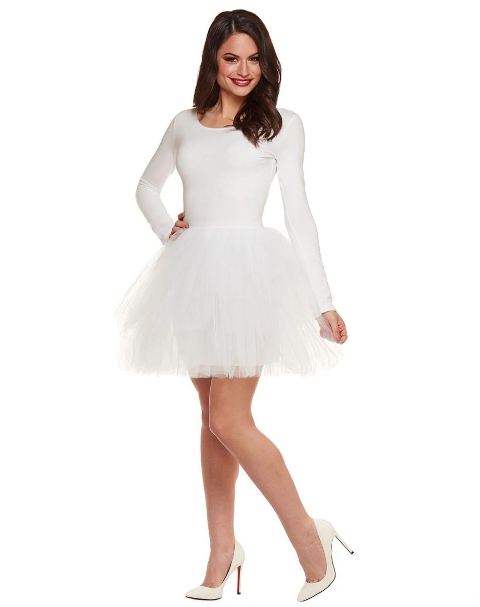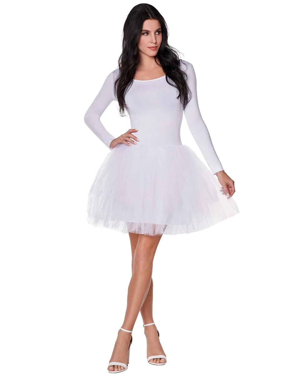 You can be anything you want if you put your mind to it! Create your own look with this amazing tutu starter dress! Long sleeve dress features a fluffy white tutu for a feminine look!