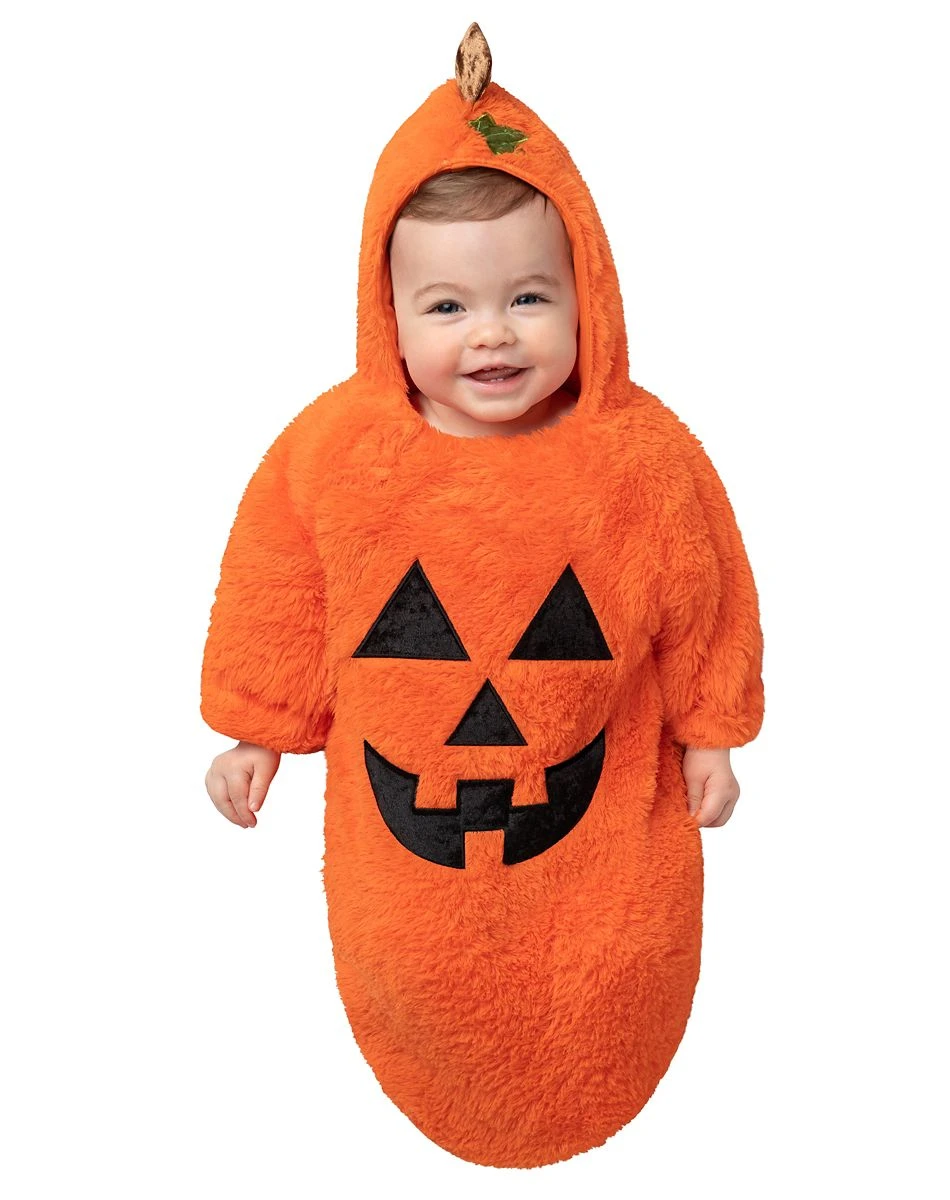 Your little one will look super cute and extra cozy in this baby bunting jack-o’-lantern costume! The faux fur material will keep them feeling warm while you make memories that will last a lifetime!