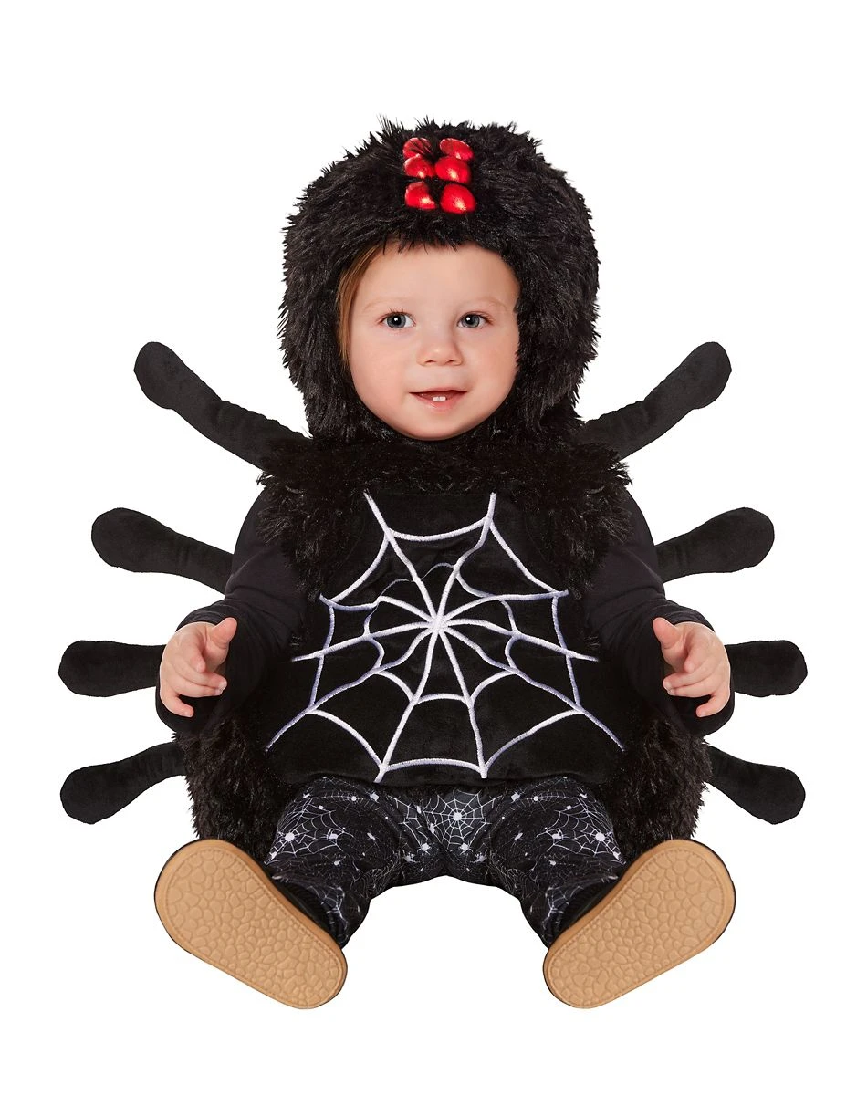 Who knew creepy, crawly spiders could be so cute? Turn your baby into a black widow when you get them this awesome spider costume! This costume includes a jumpsuit with spiderweb print on the belly, a hood, and a pair of leggings, giving your little one everything they need to become a true webster this Halloween.