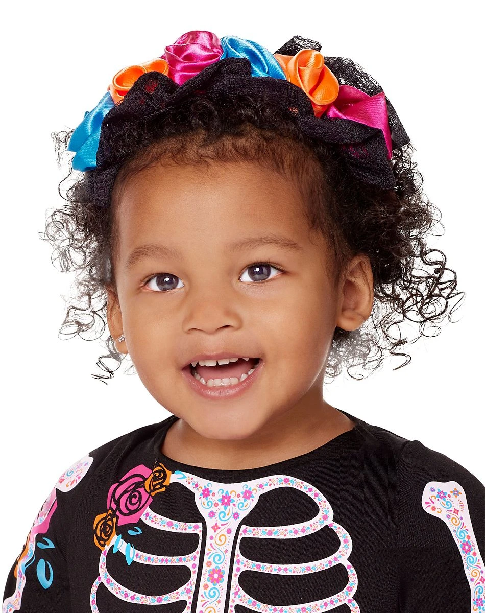 Your little one will be the sweetest skeleton in town with this costume! With flower-printed bone graphics, a shimmering, multi-layer skirt, skeleton tights, and a matching pink, orange, and blue headpiece, your sweetie will earn skele-TONS of compliments!