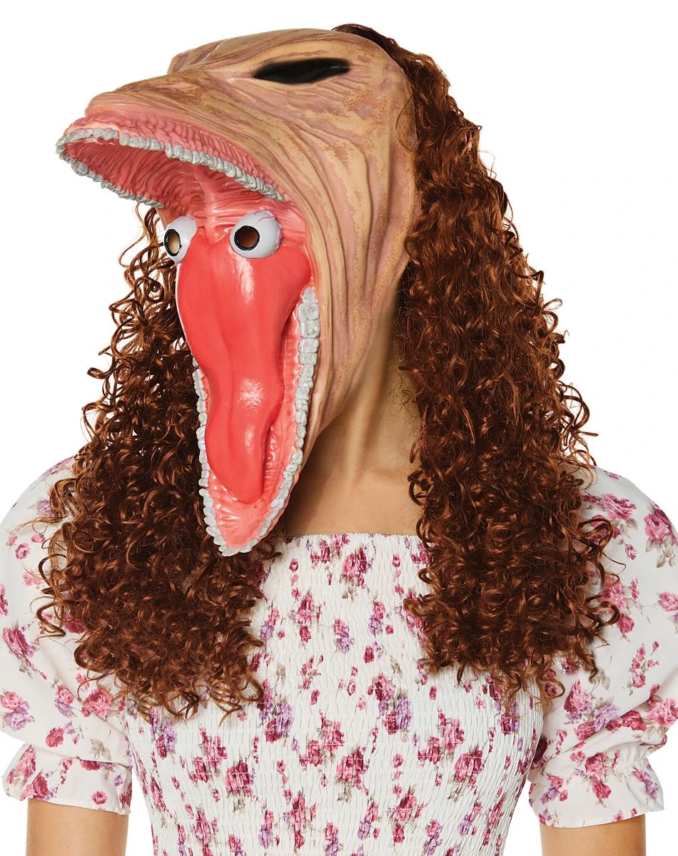 Take on the night with this horrifying Barbara Half Mask! Fans of Beetlejuice will instantly recognize this creepy look from one of the movie’s many memorable scenes. With huge rows of teeth and wide, staring eyeballs, a fit like this is sure to scare up some screams on Halloween night. Complete the look by having your partner suit up as Adam!