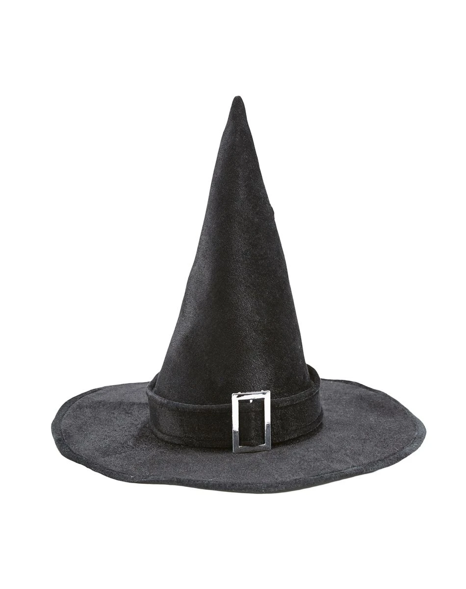 No wicked witch can cast a spell without that signature witches hat on their head! This simple black hat sports a silver buckle and wire brim that can bend into any shape.