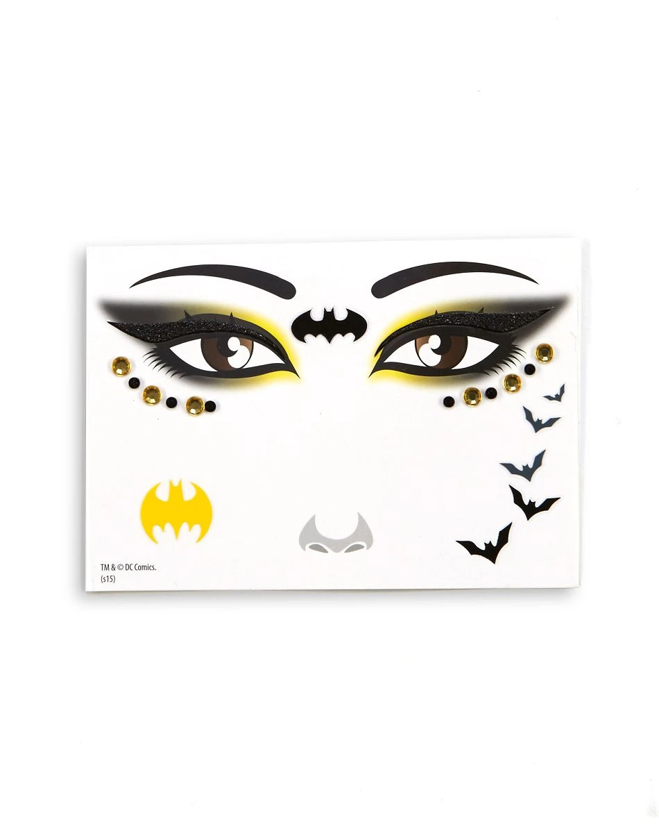 Don’t stop at a costume this Halloween when you can accentuate your new identity with these officially licensed Batman Decals! These decals include a black Batman logo, a yellow Batman logo, five flying bats in black and gray, yellow and black gems, and black eye accents to complete the look!