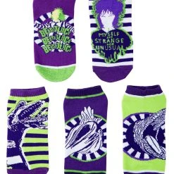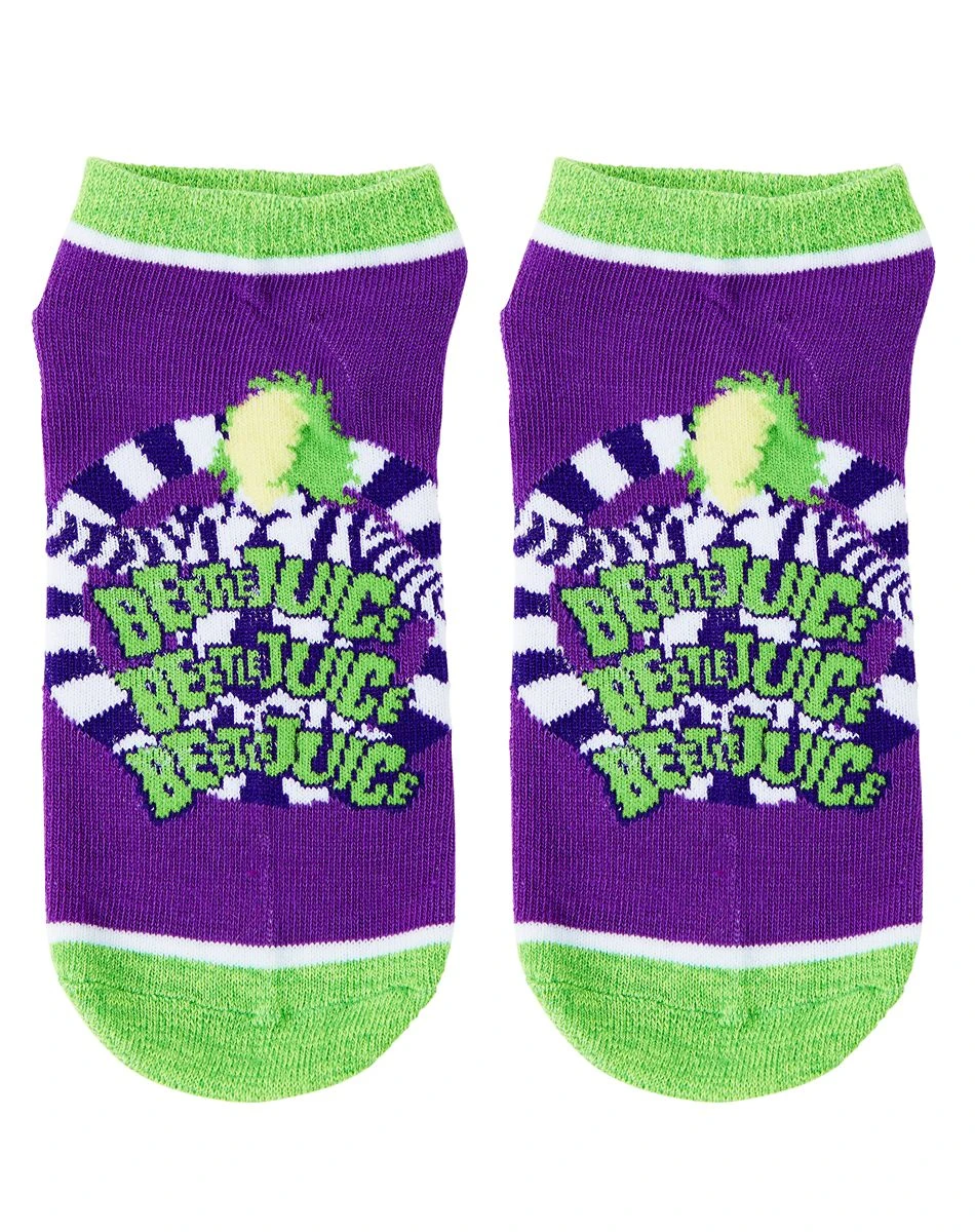 Add some colorful and fun style to your feet with these official Beetlejuice ankle socks! You can select among five different pairs, each featuring a different moment from this popular movie. These socks are perfect for any Beetlejuice fan.