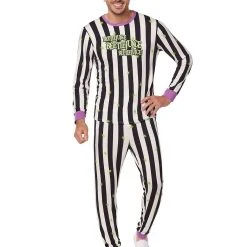 Beetlejuice, Beetlejuice, Beetlejuice! Snuggle up in ghoulish style with this Beetlejuice-inspired pajama set! This officially licensed pajama set, which includes a pajama shirt and pajama pants that resemble Beetlejuice’s iconic pinstripe suit, is the perfect choice for anyone looking to show their love for their favorite freelance bio-exorcist.
