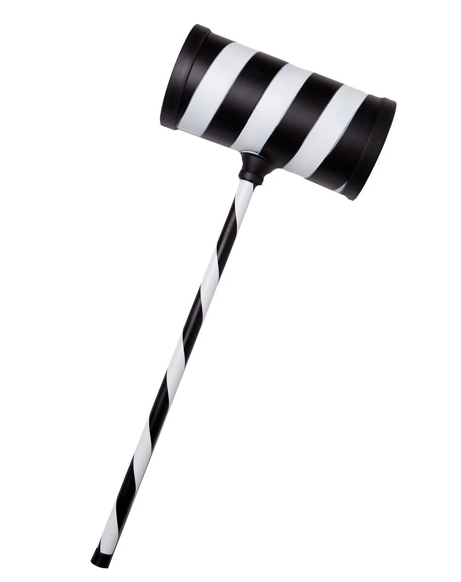 Smash this Halloween like the killer clown you are with this black and white striped hammer! The oversized weapon is perfect for completing your harlequin or jester look.