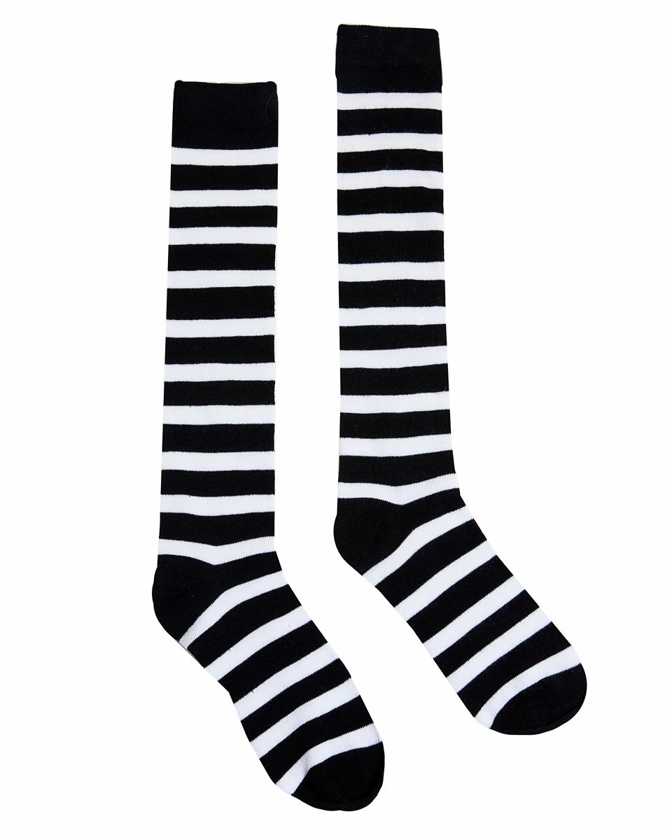 Whether it is crazy sock day or you’re just trying to get into the Halloween spirit these black and white knee-high socks are the perfect accessory for you!