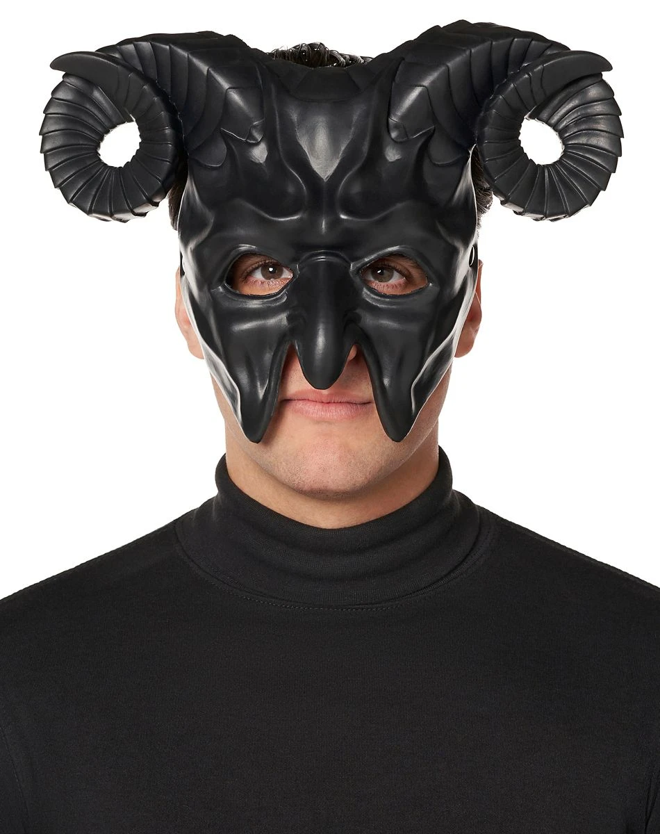 Give everyone a total fright this Halloween in this Black Horror Devil Half Mask! This scary mask is sure to invoke fear with its curled horns and freaky features.
