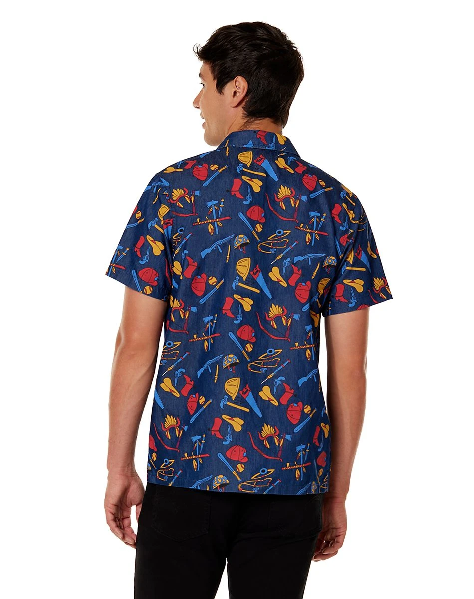Wanna play? Add this colorful button down shirt to your casual look and you’ll show everyone that you’re a true horror head. This button down shirt features an all over print that will have you standing out in every crowd you enter.
