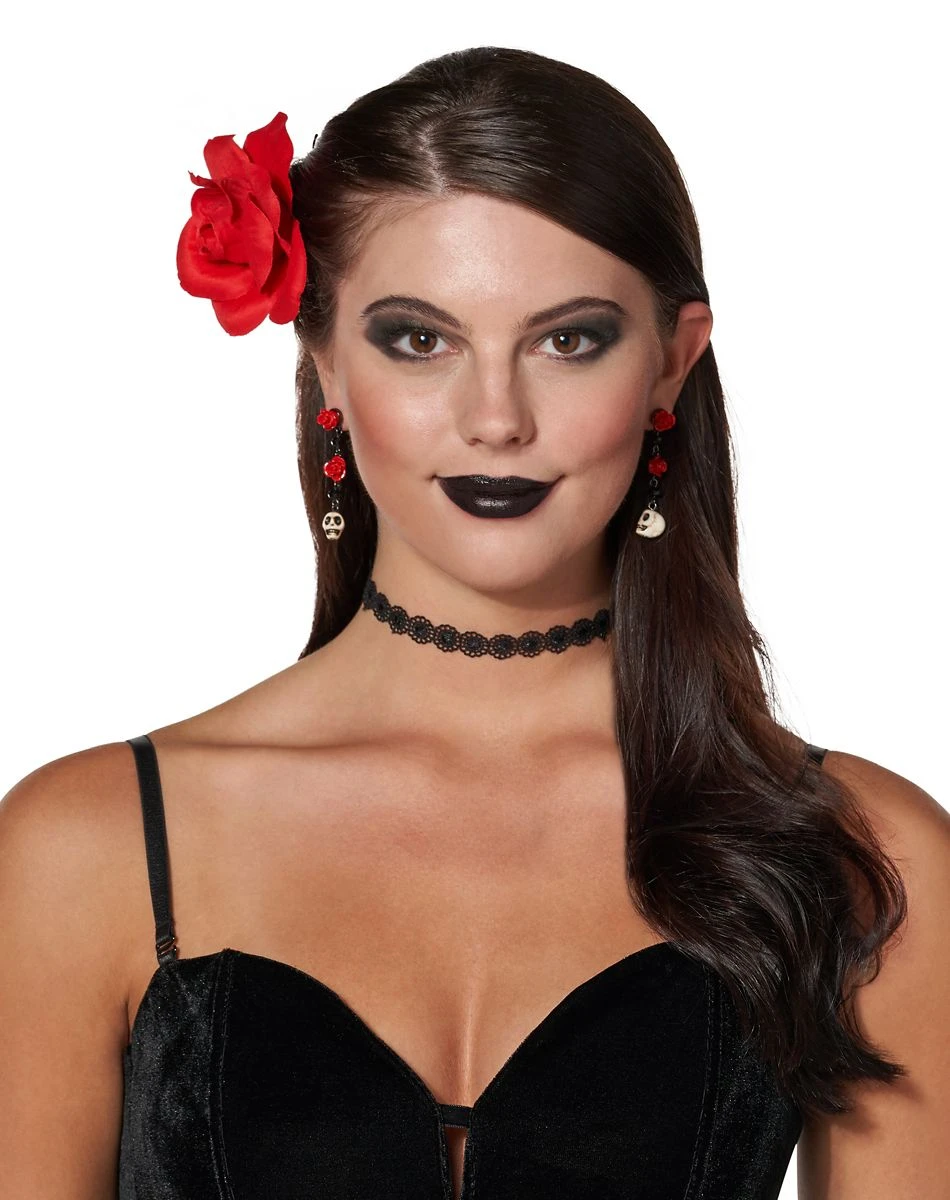 These beautiful earrings will make your Day of the Dead costume even better! With skull and flower detail, you’ll stand out in every crowd.