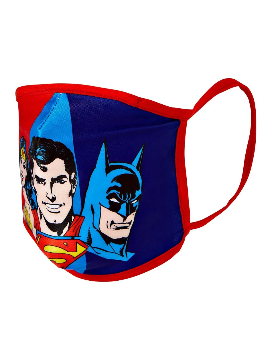 Keep safe and totally covered up at your next comic-con when you show up rocking this officially licensed DC Heroes face mask. This face mask features some of your favorite heroes from the Justice League including Batman, Wonder Woman, and Superman! Any comic fan will be sure to give you two thumbs up for wearing this mask.Â