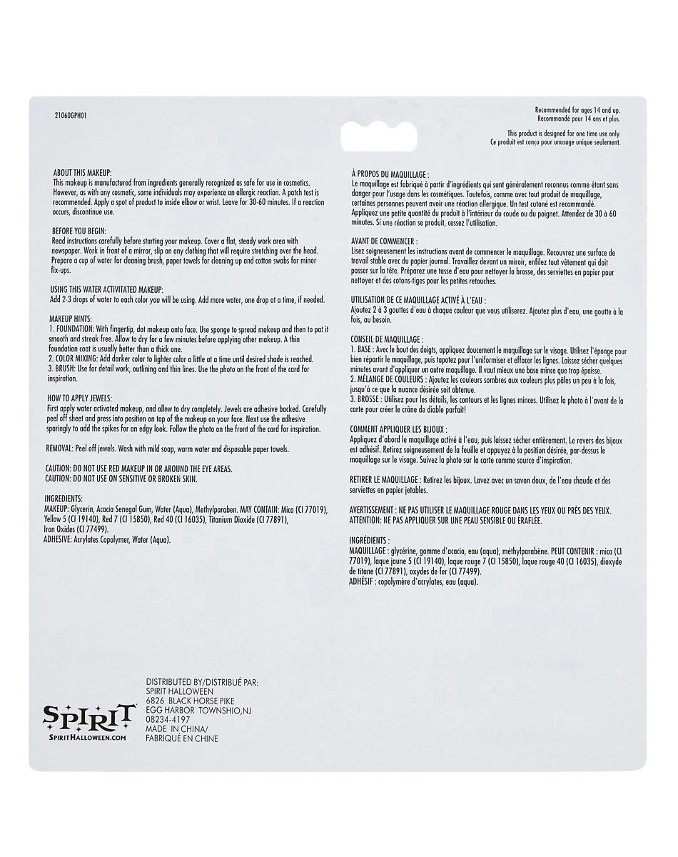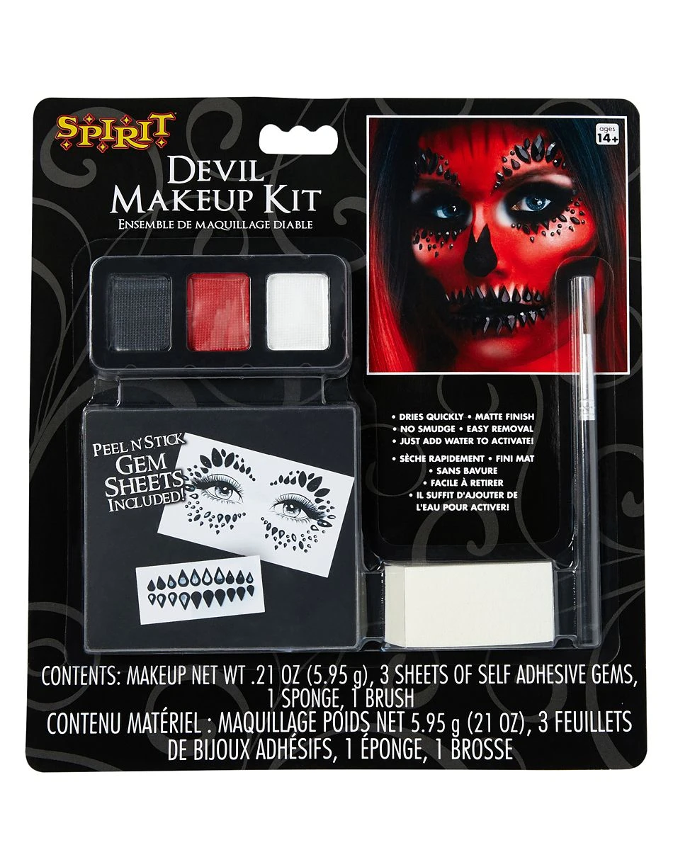 Look ready to wreak havoc and instill fear when you use this Devil Makeup Kit! With its red, black and white makeup along with adhesive gems, you can transform your face into a scary devil easily.