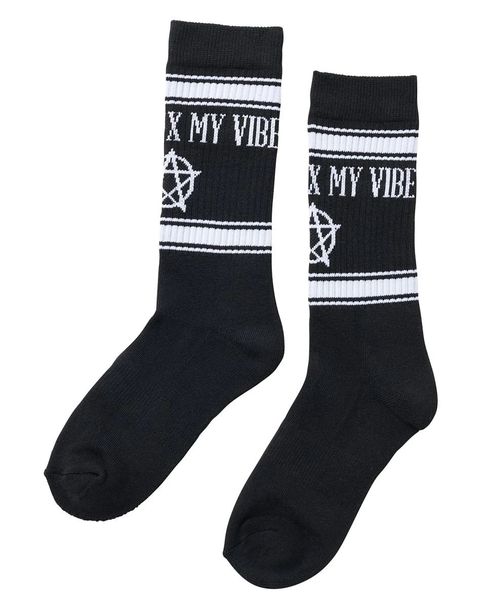 Get ready to live it up this Halloween season no matter what the haters say in these Don’t Hex My Vibe Crew Socks! These black and white crew socks pass the vibe check with flying colors with their pentagram graphics, athletic stripes, and cozy stretch.