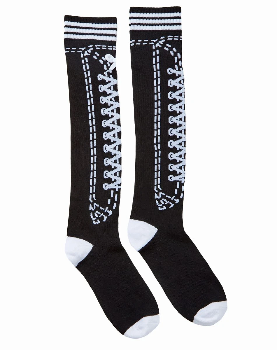 Trick everyone with this treat! These comfortable socks look like you’re wearing shoes! The printed lace up detail hugs your legs perfectly for a look that is all your own!