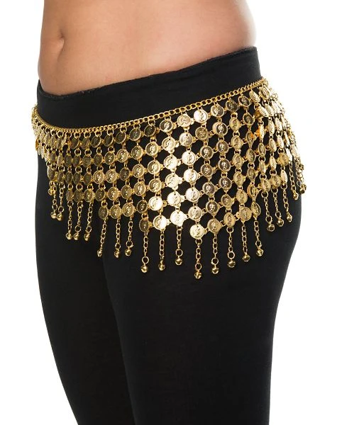 Strike gold when you wear this fortune teller coin belt! Shimmy and shake your way through mysterious adventures of the mind when you wear this metallic gold disc skirt.