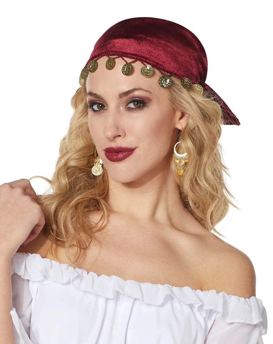 Top off your fortune teller costume with this velour headwrap complete with hanging coins. You’ll look like you’re ready to peer into the future in style.