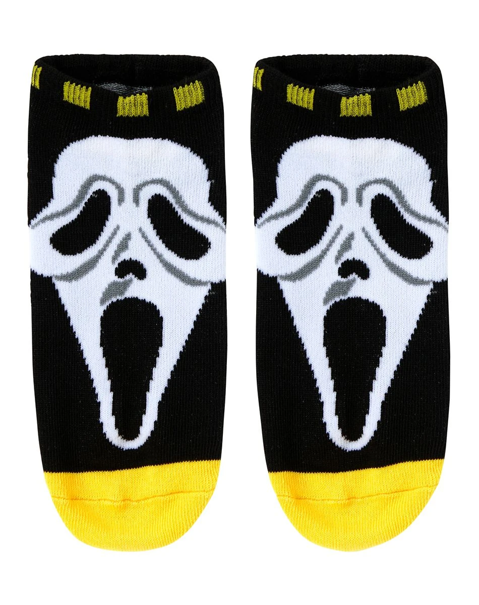 Add some slasher style to your wardrobe with these Ghost Face No Show Socks! This officially licensed 5-pack of socks, which features assorted styles of your favorite horror icon, Ghost Face, will add some positively petrifying style to your day.