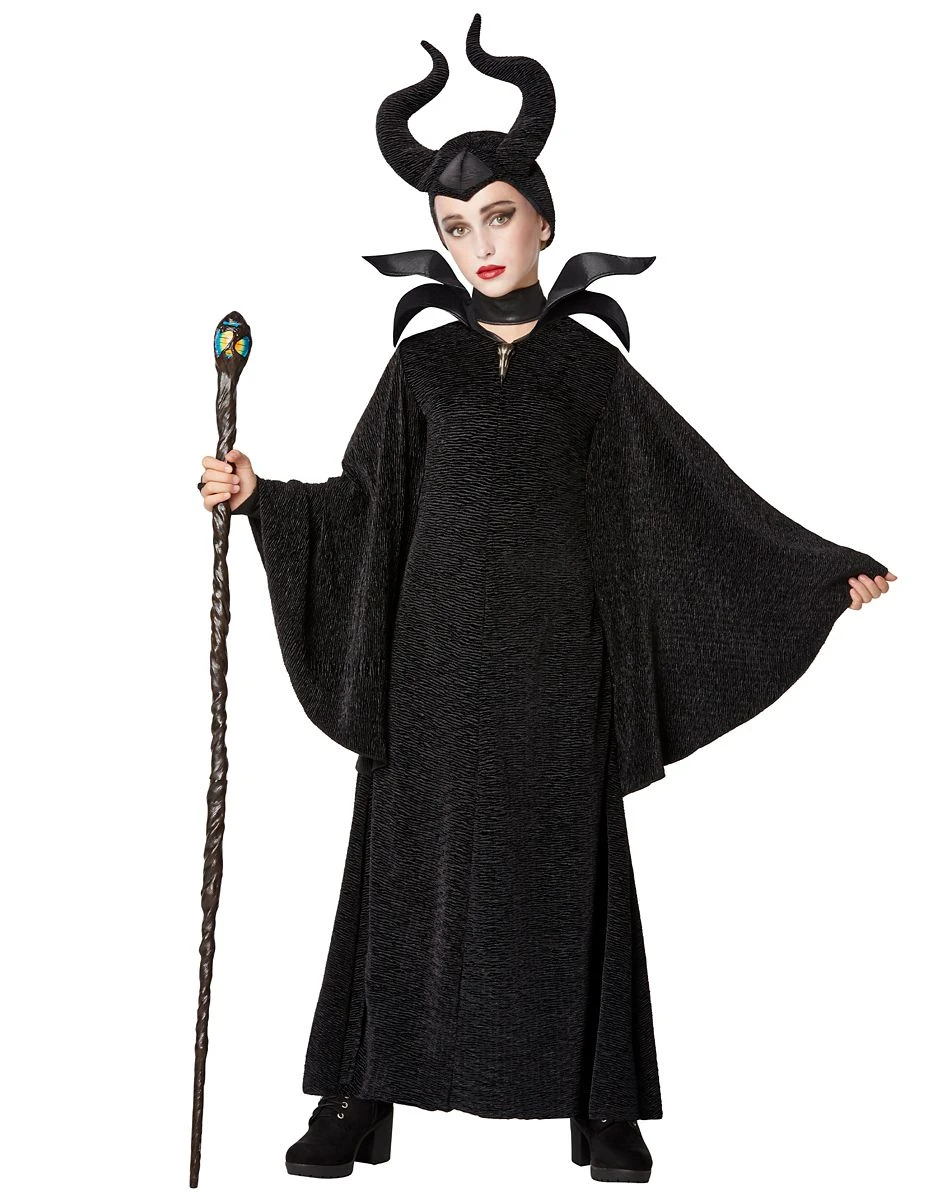 Get ready to get wicked this Halloween when you wear this officially licensed Girls Maleficent Dress Costume. This costume includes an eye-catching dress, a choker, and a hat that will have you looking exactly like the Mistress of Evil!Â