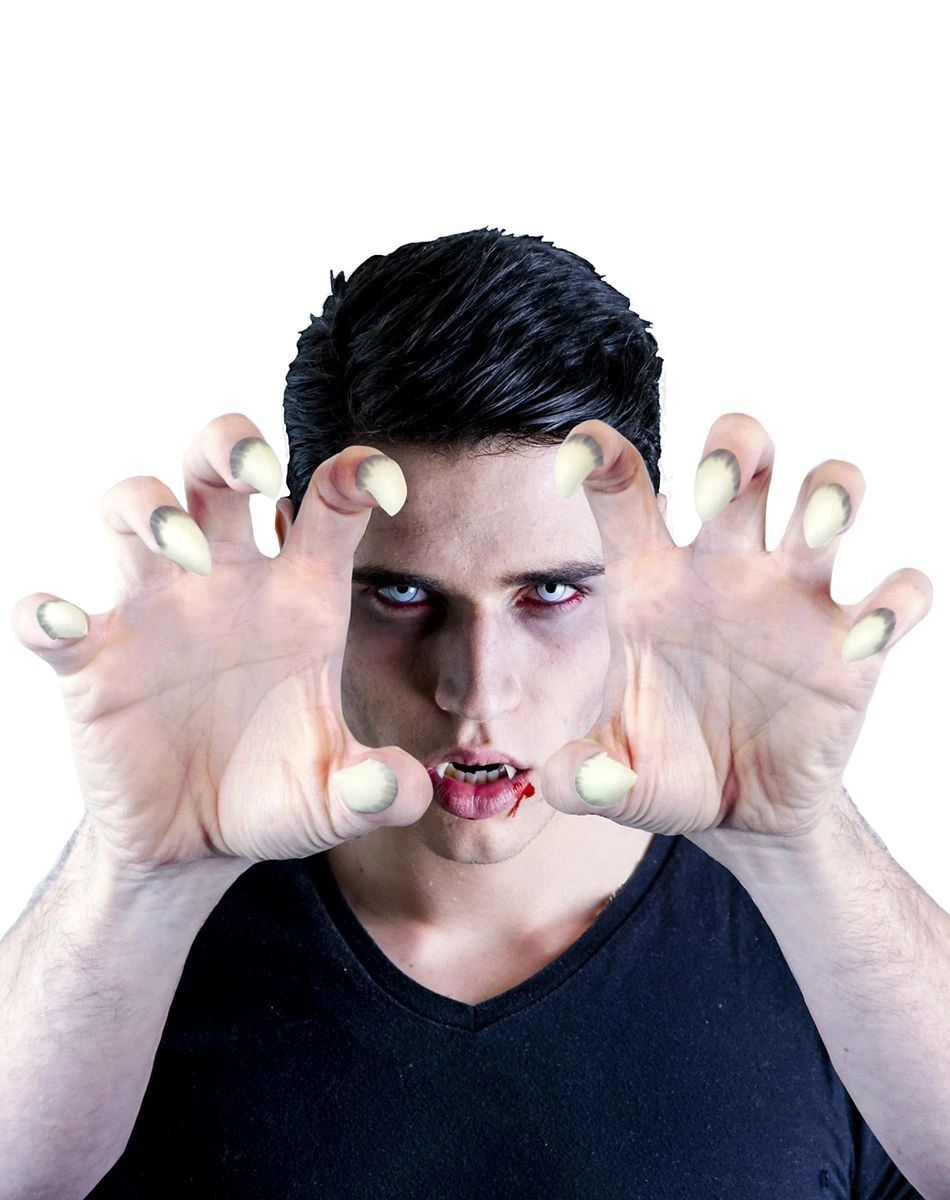Add a spooky touch to your vampire look when you add these glow in the dark vampire claws! The included glue will make for all day sticking!