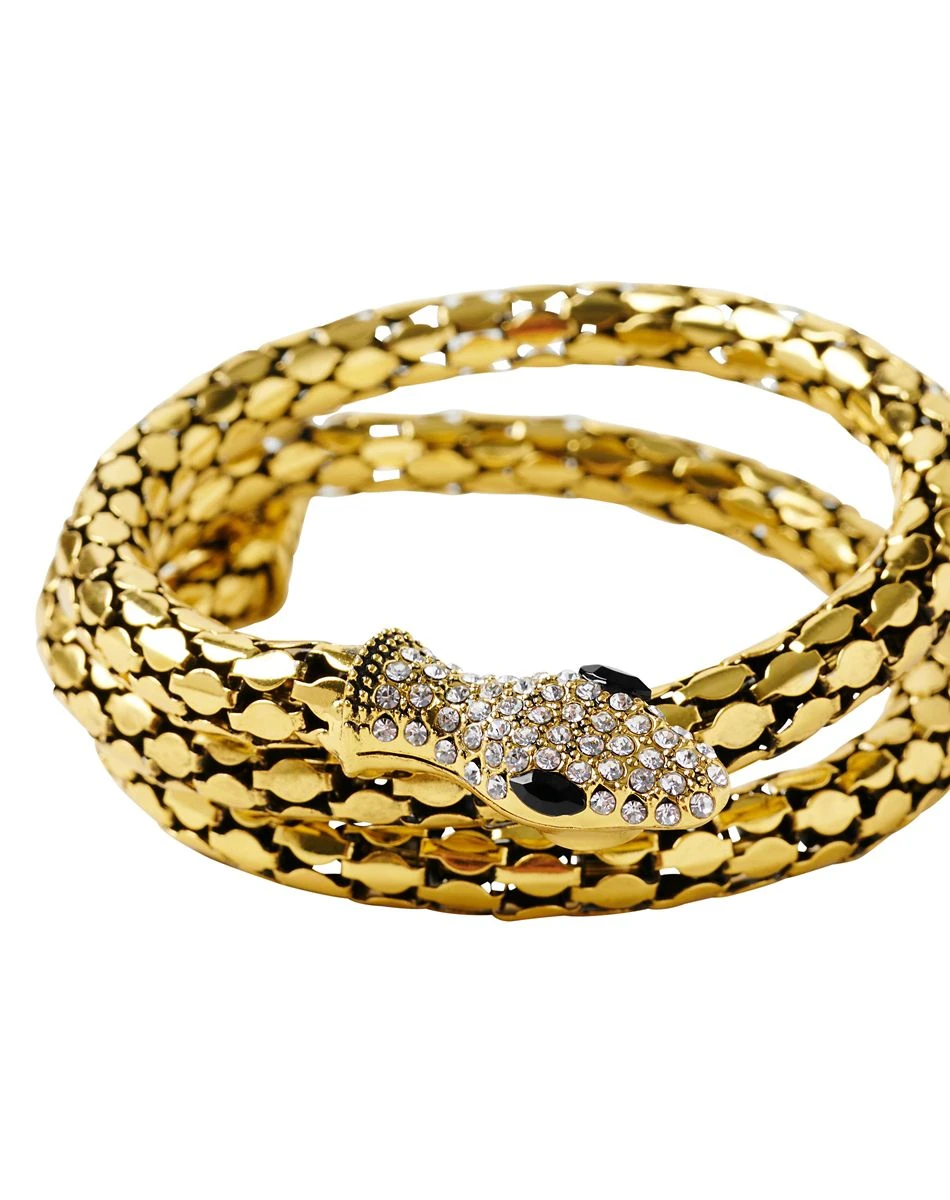 Add a dangerously stylish accent to your look with this Goldtone Roman Snake Cuff. This snake cuff features stunning detail including ornate scales and faux gem eyes.