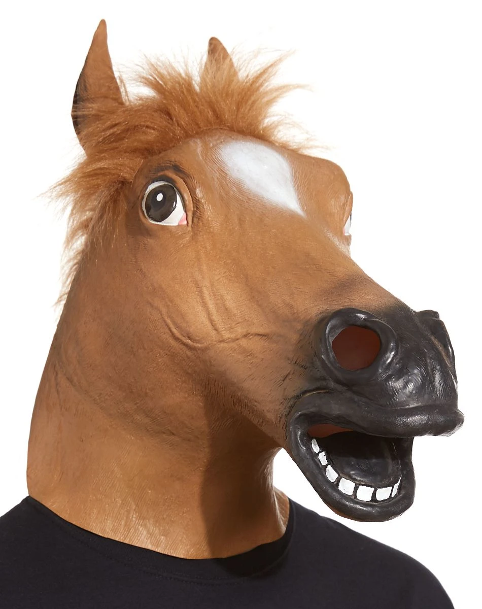 Giddy up! Some people may try to put a saddle on you when you wear this Horse Mask. Conveniently placed eye and nose holes make this a perfect and comfortable addition to any creepy costume of your choice.
