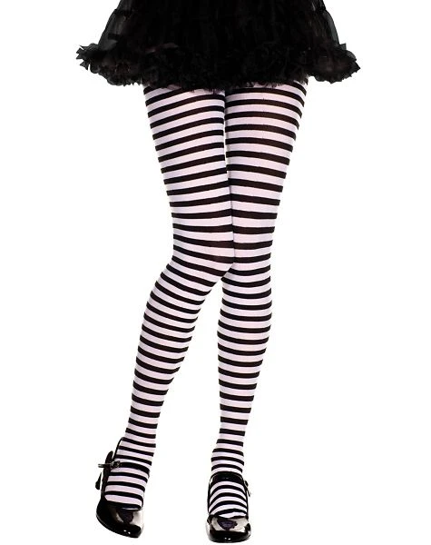 Kick up your heels and have fun when you complete your costume with this pair of black and white striped girls tights.