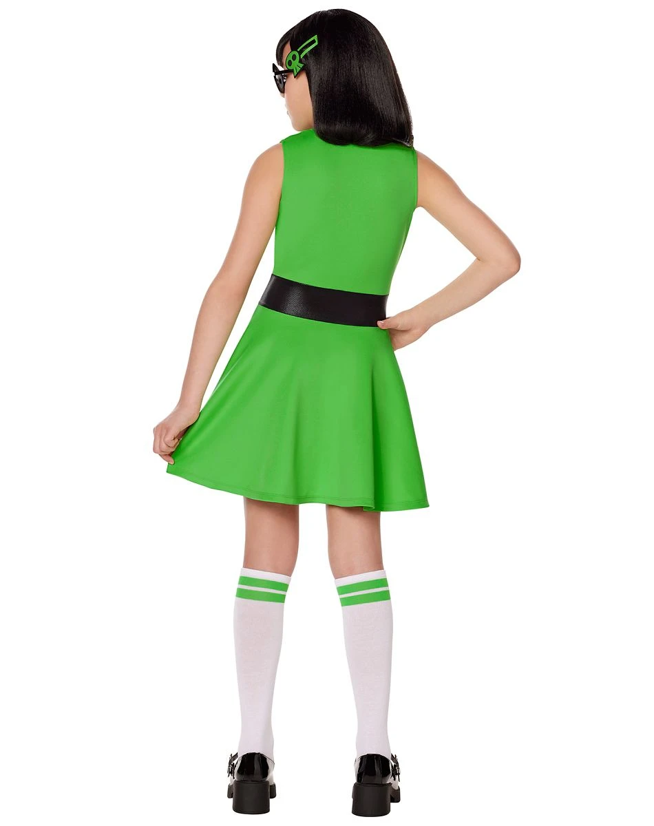 Do you have what it takes to be the toughest Powerpuff Girl? You’ll look gorgeous in green when you dress up as Buttercup! This Buttercup costume includes a green dress with an attached black belt and an official Buttercup logo, a fun hair accessory, wide-eyed sunglasses, a necklace displaying Buttercup’s name, and a pair of crisp white and green knee-high tights.