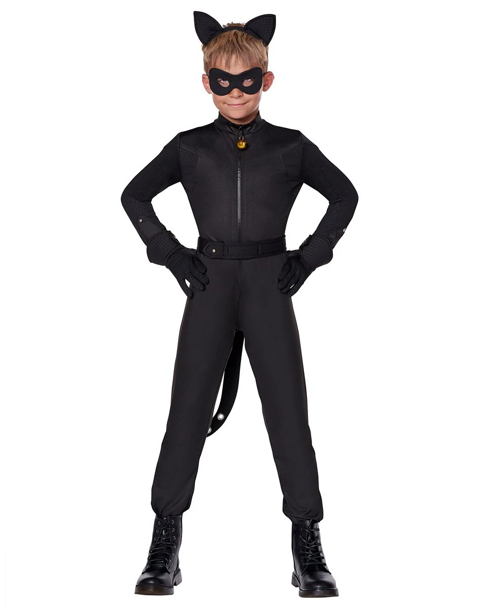 Let your little one transform into a superhero this Halloween when you dress them in this officially licensed Cat Noir costume! They will gain the power of bad luck and destruction as they take on every house gathering all the Halloween candy they can fit into their bag! The adorable catsuit will keep your child comfortable all day long and have them looking like a little feline. Add the included ear headband, eyemask with elastic back, detachable belt and tail and gloves for a put together look!