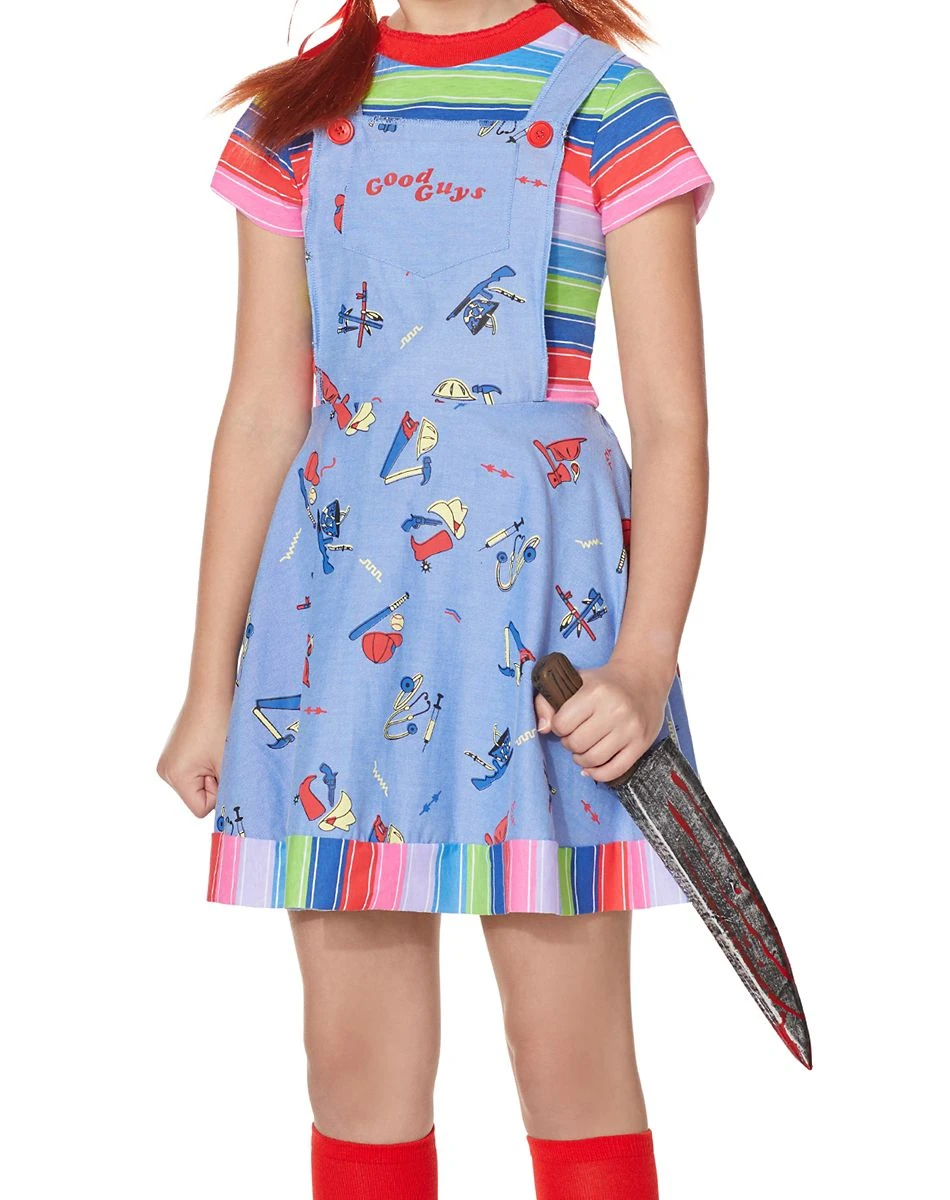 This costume is to die for! Your little one will be the scare of the neighborhood in this officially licensed kids Chucky dress. You may initially see your average doll, but this one is not to be messed with!