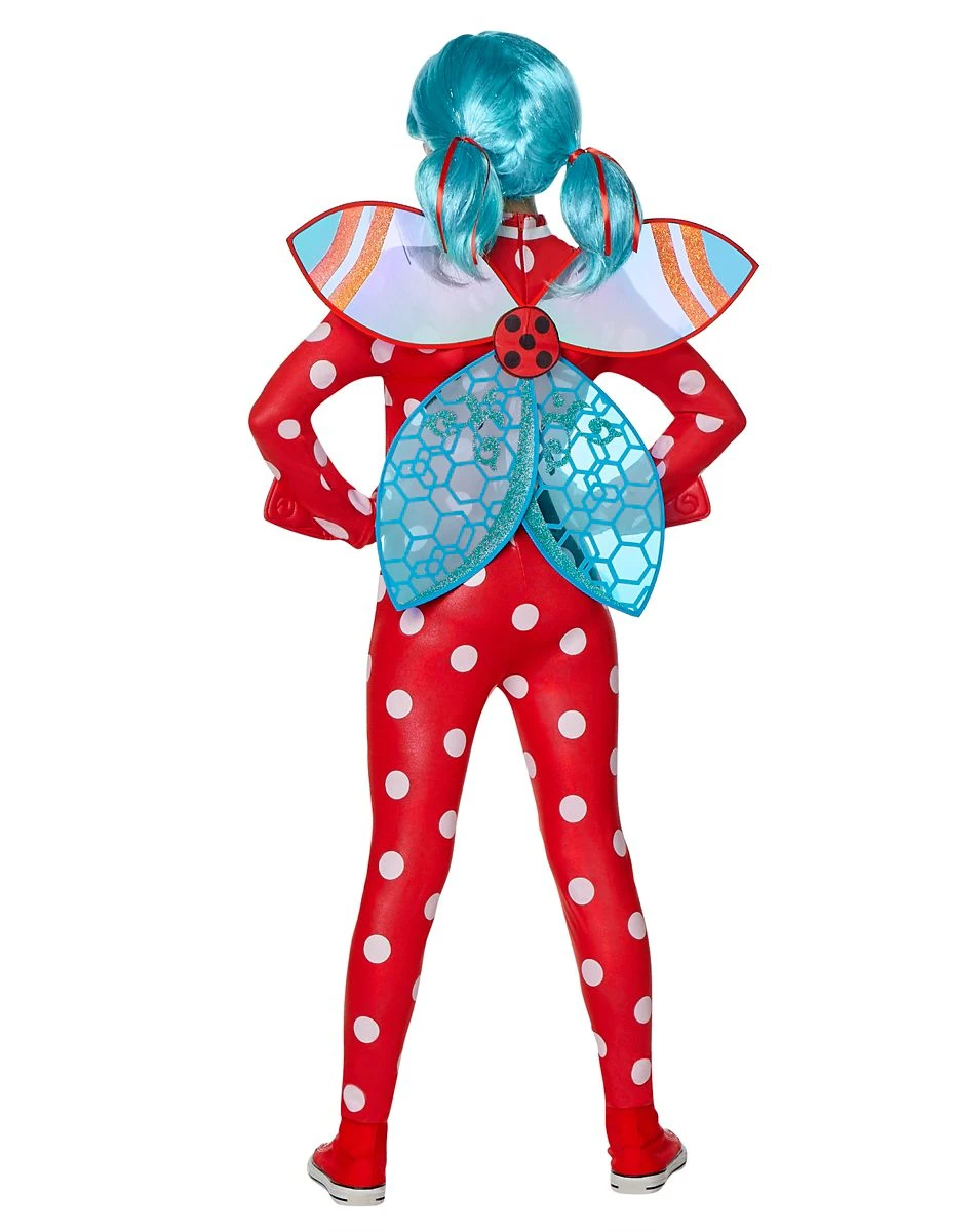 Be ready to activate your cosmic powers when you put on this official Miraculous Ladybug Cosmo Bug Costume! This costume features a red and white polka dot jumpsuit and gloves, along with a blue wig and wings. You’ll look ready to explore outer space just like your favorite TV character in this exciting costume.