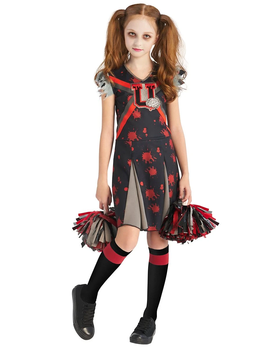 Show off your zombie team spirit this Halloween by dressing up in this Dreadful Zombie Cheerleader Costume. This costume will have you looking just like the captain of the cheer team, if she was a zombie! This costume includes a blood splattered cheerleading dress and pom-poms so you can look ready to perform a killer halftime show.