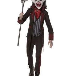 Want to be scary for Halloween? We have the perfect costume. Take on the night in this gothic vampire costume and everyone will WISH they had more garlic! The terrifying mask goes perfectly with the included jacket and attached vest, pants, and cane.